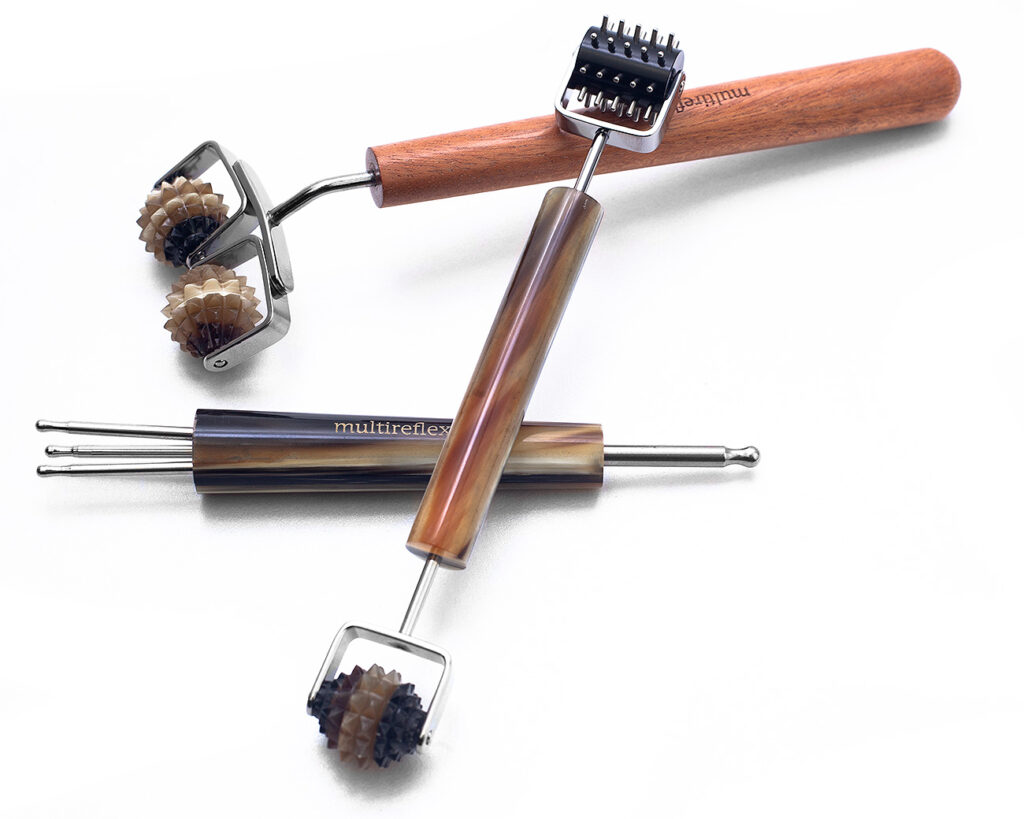 Grâce à la première étape, vous avez pu déterminer si une stimulation yin ou yang est plus adaptée à votre besoin. Si le côté soucoupe du Grand-marteau vous a semblé apaisant, cela suggère un travail yin sur les zones réflexes. En revanche, si vous avez préféré la tête de picots en gomme, un outil à effet yang conviendra mieux.